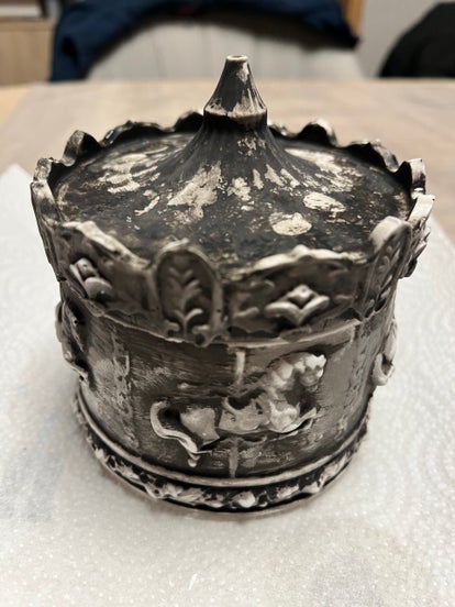 Schmuckdose Karussell erinnert an Kindheitstagen auf der Kirmes oder Weihnachtsmarkt. Als Kind liebte ich Karussell mit Pferden zu fahren - genau diese Liebe spiegelt sich in der Schmuckdose Karusell wieder.